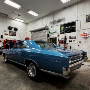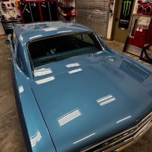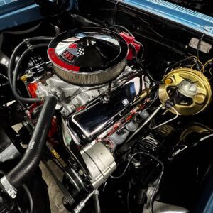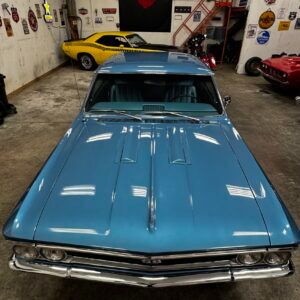 1965 396 V8 325 hp engine with four speed manual transmission. Equipped with power brakes and power steering. Drum brakes on the front and rear. Correct 12 bolt rear axle. Correct winters intake manifold, Holley four barrel carburetor, HEI distributor, Hooker headers and Flowmaster mufflers. This vehicle runs and drives great.