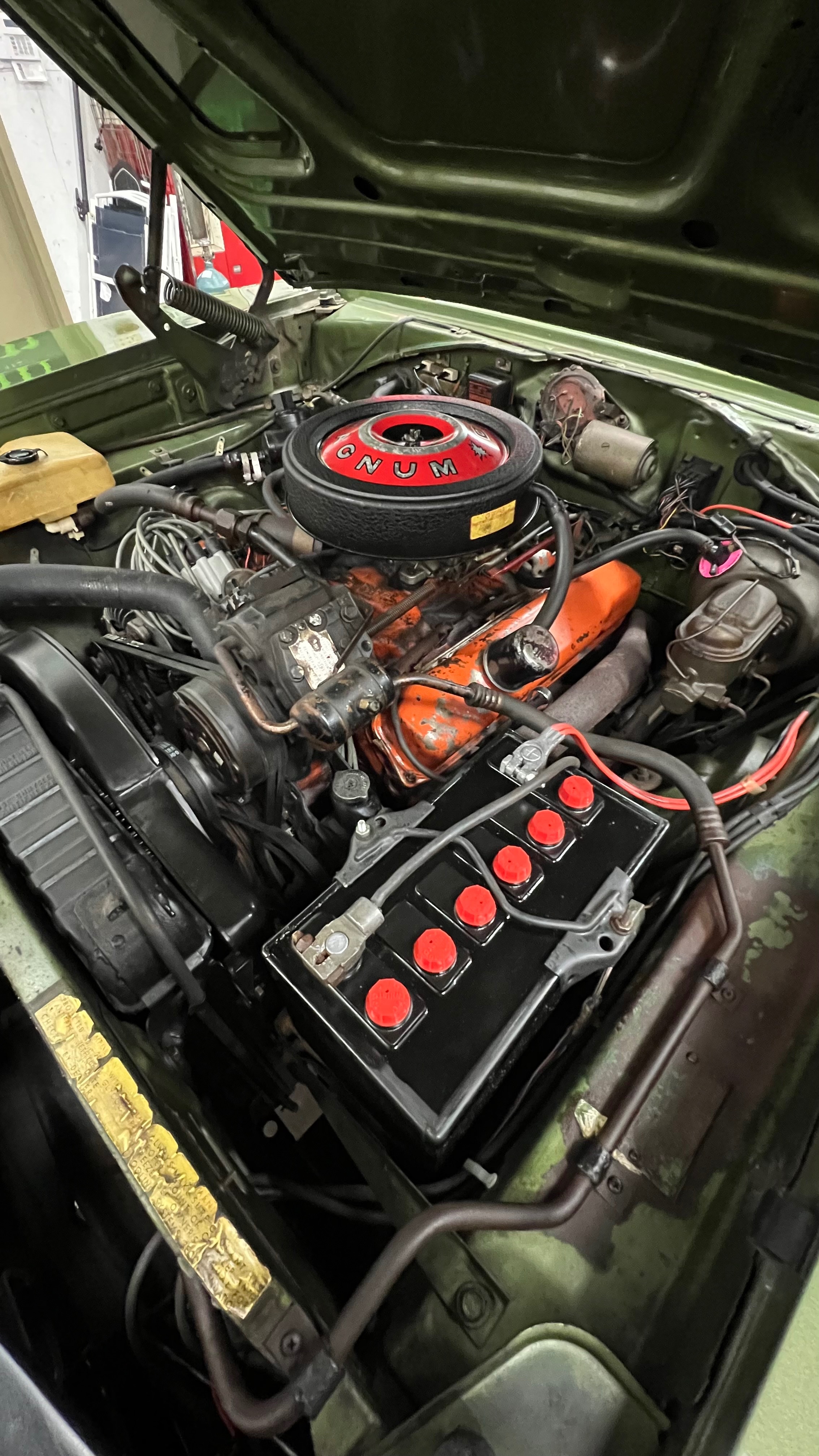 Matching numbers 440 magnum along with the 727 torque flight. matching numbers. Original jack and spare in the trunk.