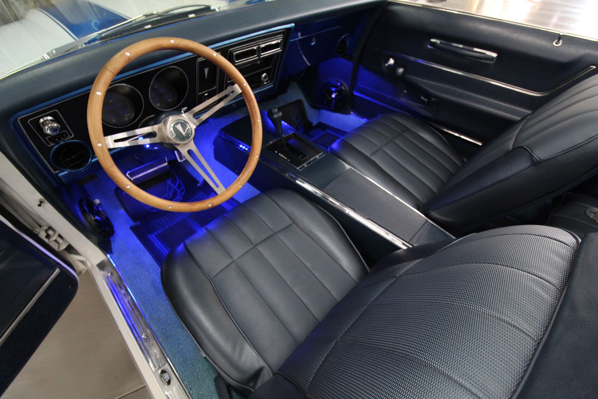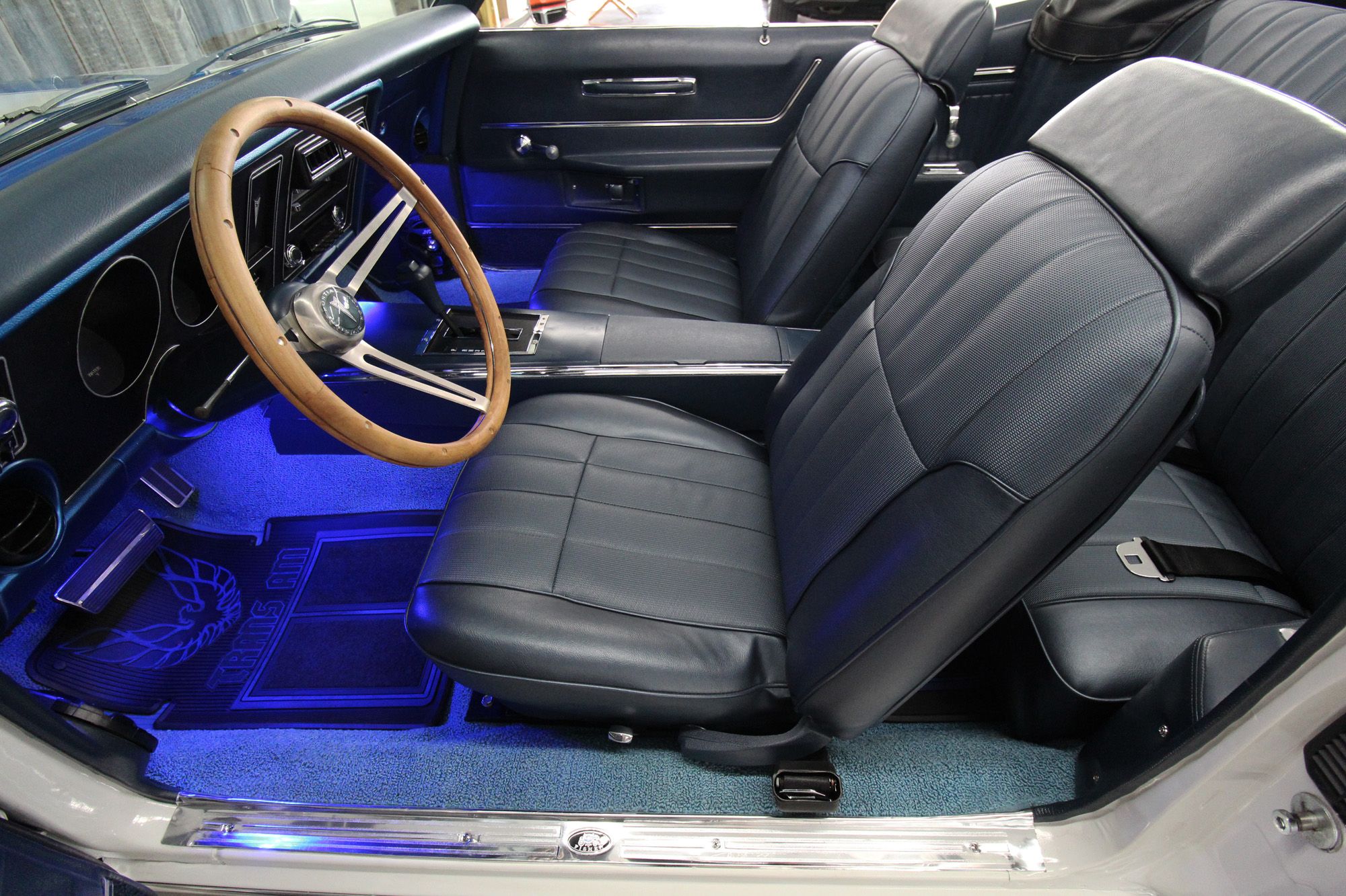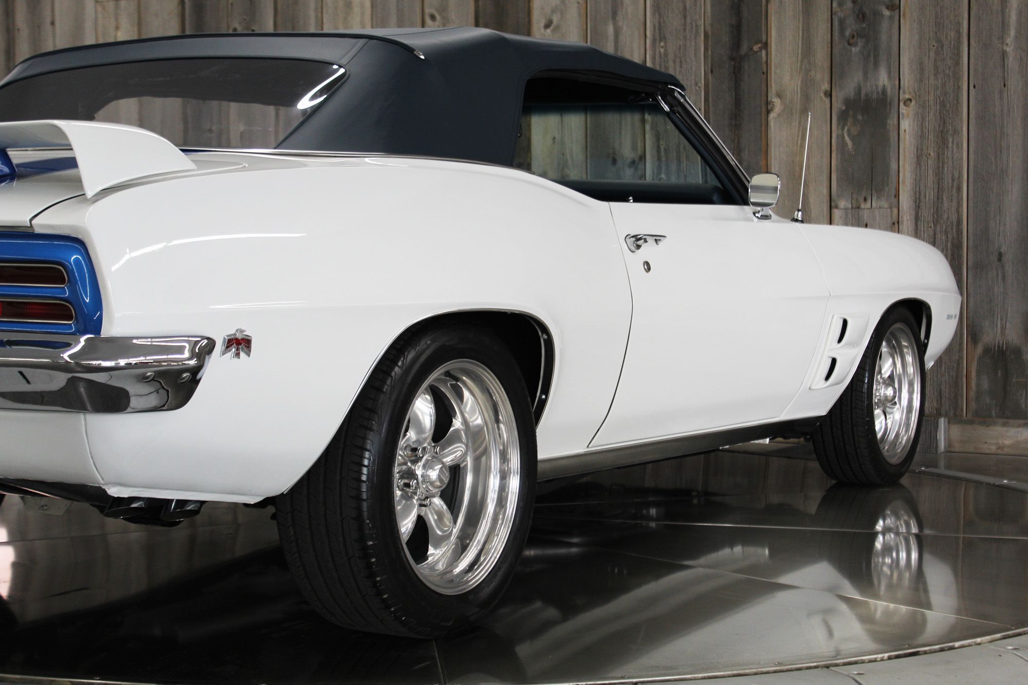 1969 PONTIAC TRANS AM CONVERTIBLE– RESTORED RESTOMOD- Rotisserie restoration completed in 2022. Rebiult and tuned LS1. COLD Air-conditioning, Per the restorer, the engine was built to put out 450 HP it feels like MORE. 1969 Trans Am LS1 with Fitech EFI model number 70050. Transmission 4L60E. Aluminum radiator, dual electric fans, power brakes with four-wheel drilled and slotted rotors, chrome brake booster, and reservoir. Rack & Pinion power steering. Fully rotisserie paint including floor pans, fully painted suspension, tubular A-arms, subframe connectors, and front and back swaybars. Modern, blue digital gauges, 15” wood grain steering wheel. At the time of restoration, the entire interior was renewed or restored: New seat covers and foam, new door panels, kick panel, custom matching Firebird floor mats, speakers JVC with AM/FM radio, blue LED interior, and trunk lights. Beautiful vinyl convertible top with boot. Polished finish Torque Thrust American Racing wheels with Cooper Radial Tires, front 215/45R17, rear 235/50R17.