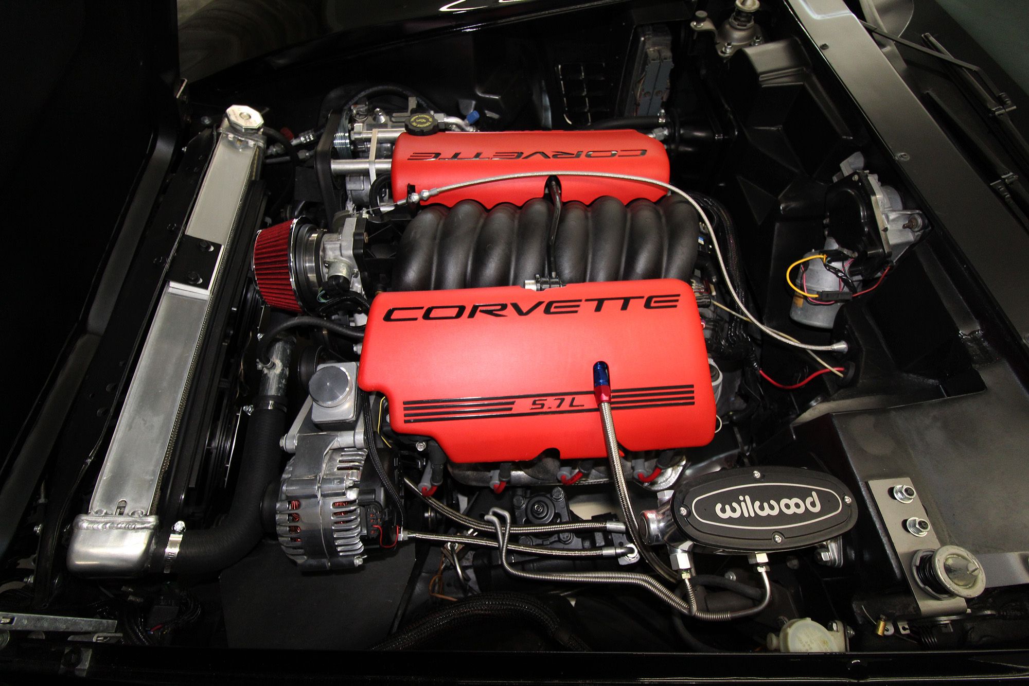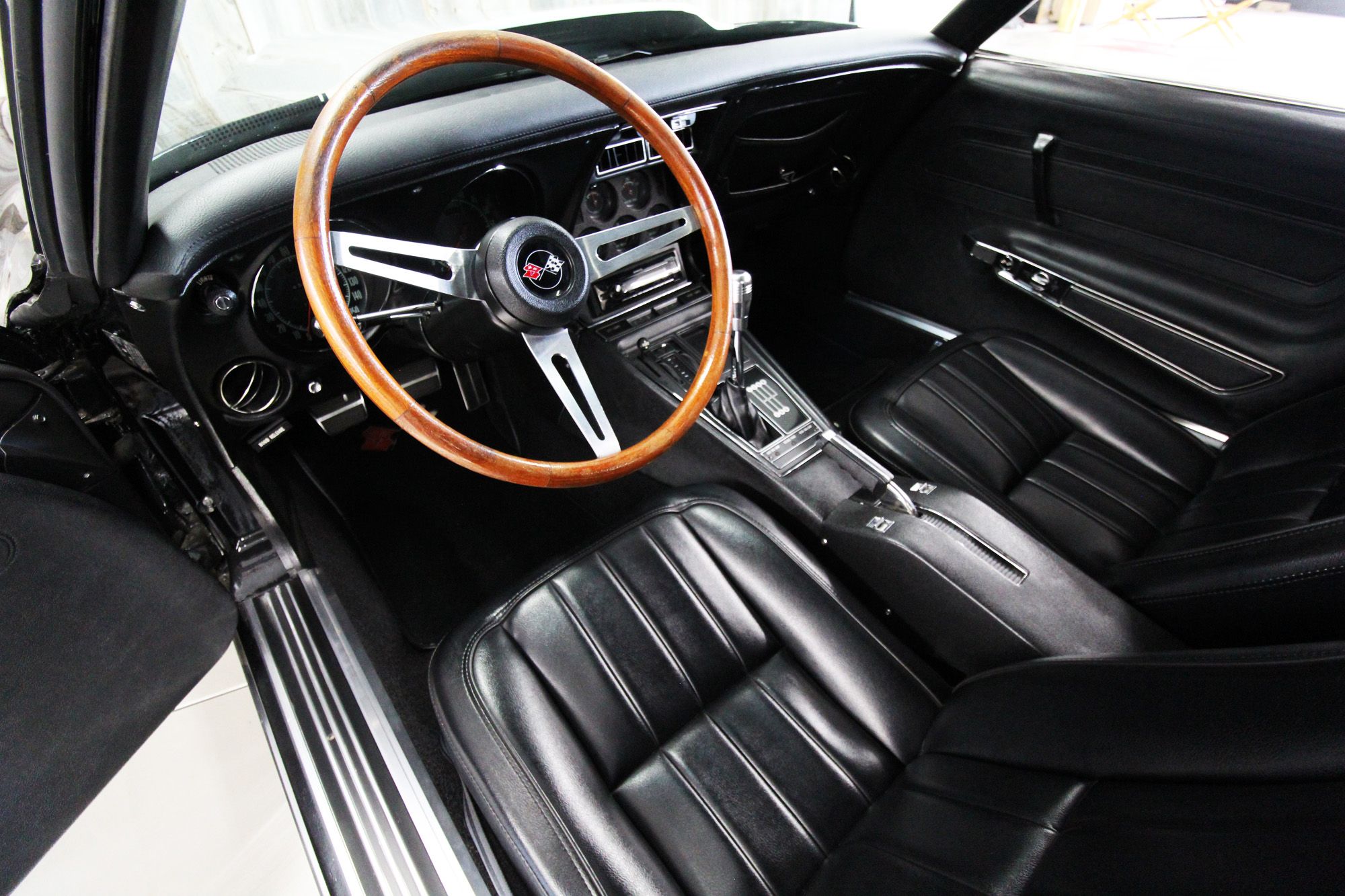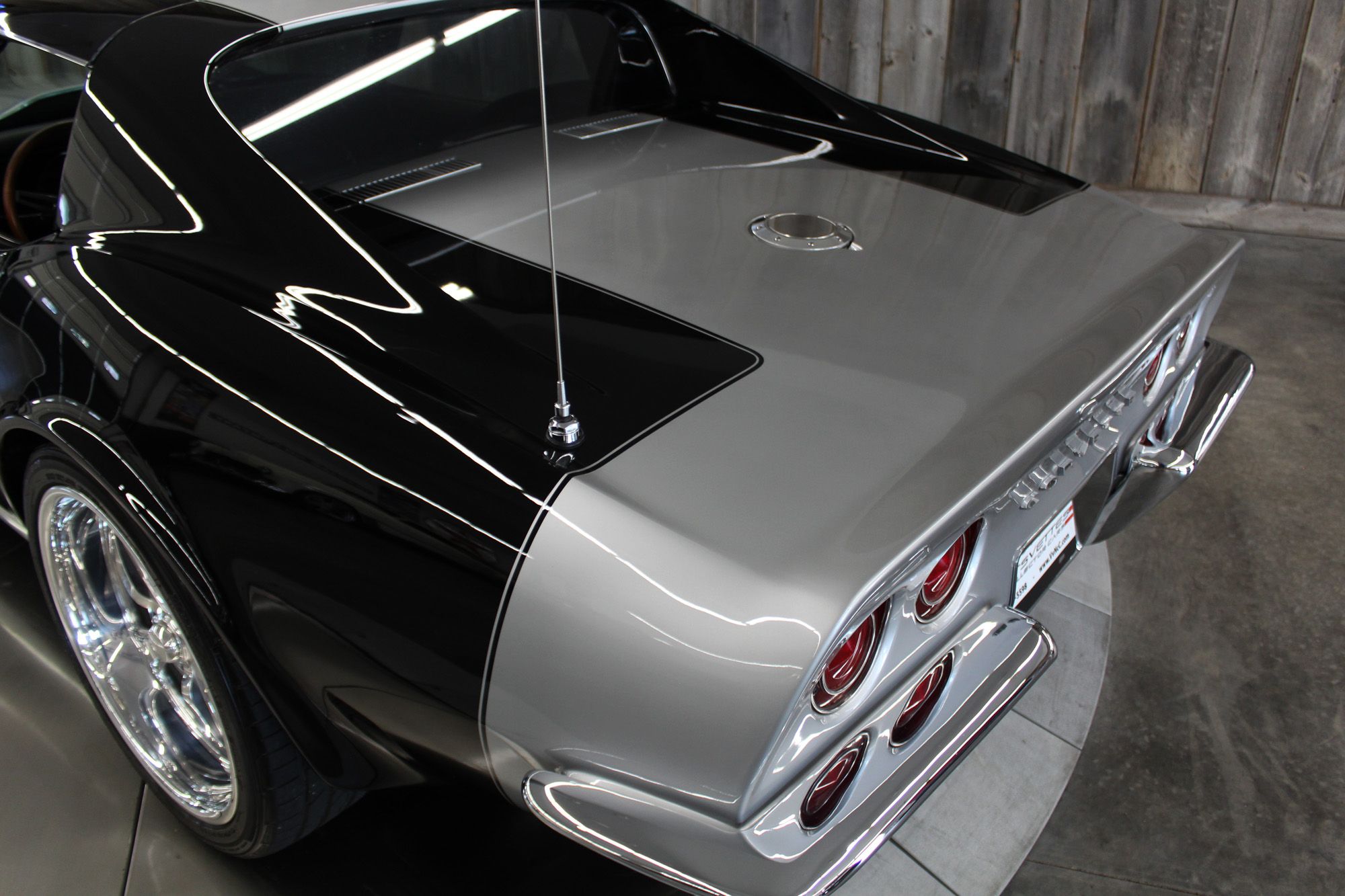 Frame-off Restored. 5.7L LS1 V-8 engine, LS1 heads, port and polished, Thunder Racing 224/224–112 camshaft. Tremec T-56 6-speed manual transmission, Pro 5.0 6spd shifter with hydraulic clutch. Axalta Cromax Black Paint, and Demon Axalta Cromax Pro Super Silver. Baldwin motion paint scheme. Aftermarket polished Billet specialties SLX series wheels, 18-inch in front and 20-inch wheels in back. Billet gas-fill inlet cover. 4-wheel disc brakes with Red calipers and drilled and slotted rotors, Wilwood master cylinder, Borgeson power steering, Comp Springs. L88 Corvette hood, Vintage Air. Electric pop-up headlight conversion. All new black vinyl upholstery. Kenwood CD stereo with Infinity speakers and 6 x 9 Infinity speakers in separate enclosures in the rear. Removable rear window. Tilt steering column with natural wood, three-spoke steering wheel. Embossed Corvette racing flag floor mats. New black nylon lap belts and original retractable shoulder belts behind the seats. All the weather strip, carpet, handles, etc. are new or restored. The odometer reads 43,926 miles, its estimated current miles are under 7,000 since restoration. All new chrome bumpers, new/restored stainless, and new emblems as well. Build Documents Included. This is a seriously nice RestoMod that will impress the most decerning collector or avid performance driver.