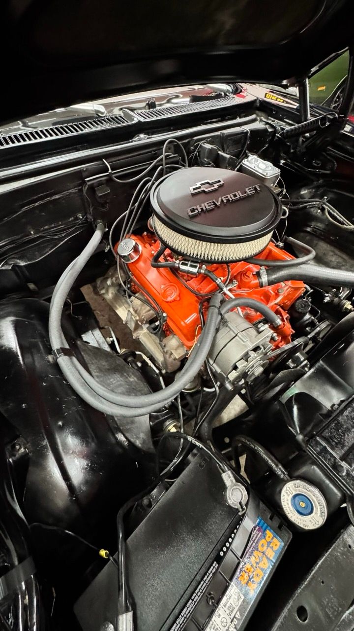 Matching numbers 350 that went through a complete rebuild with new piston new rings new bearings. 4 speed saginaw transmission with middle console. 10 bolt posi rear end. New disc brakes and new caliber up front. New drums in the back. New master cylinder. The car runs and drives and handles really well.