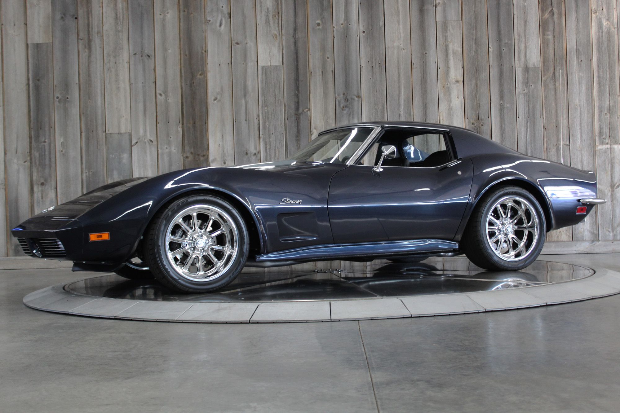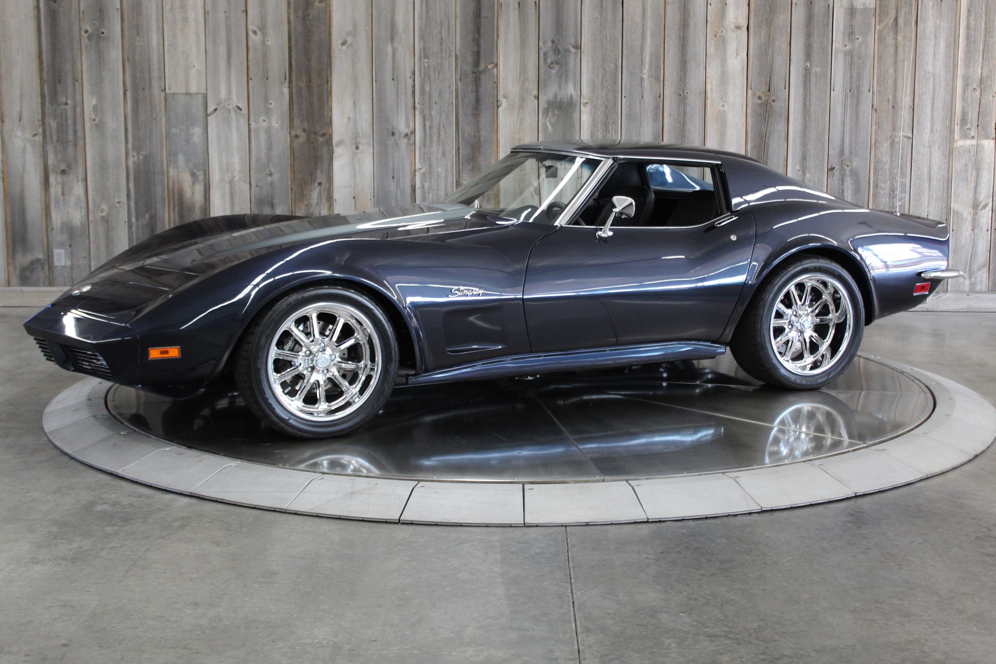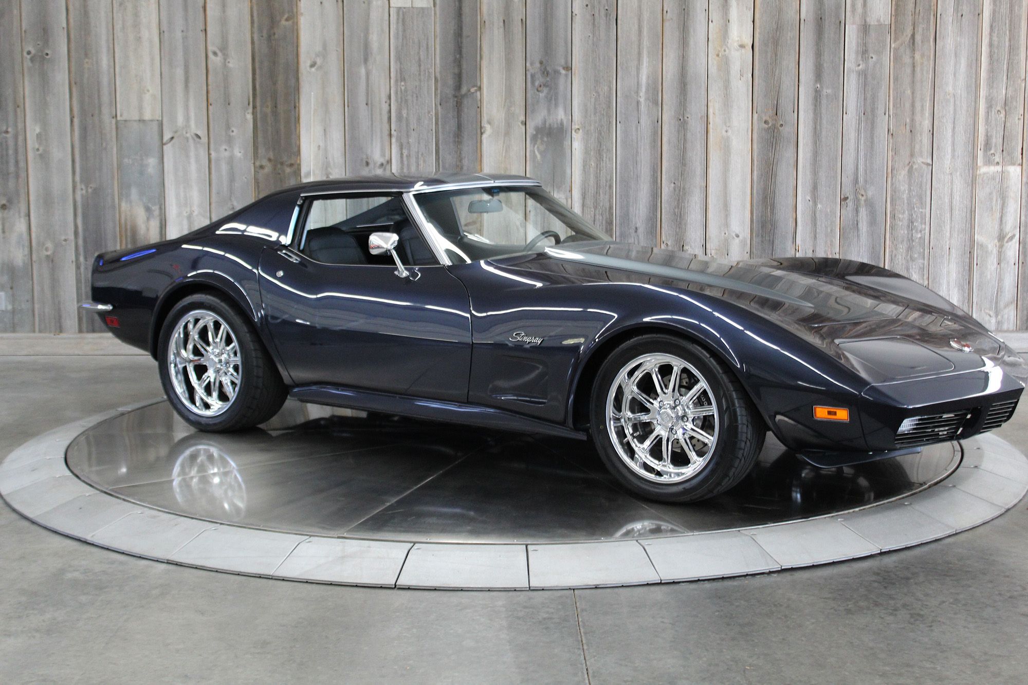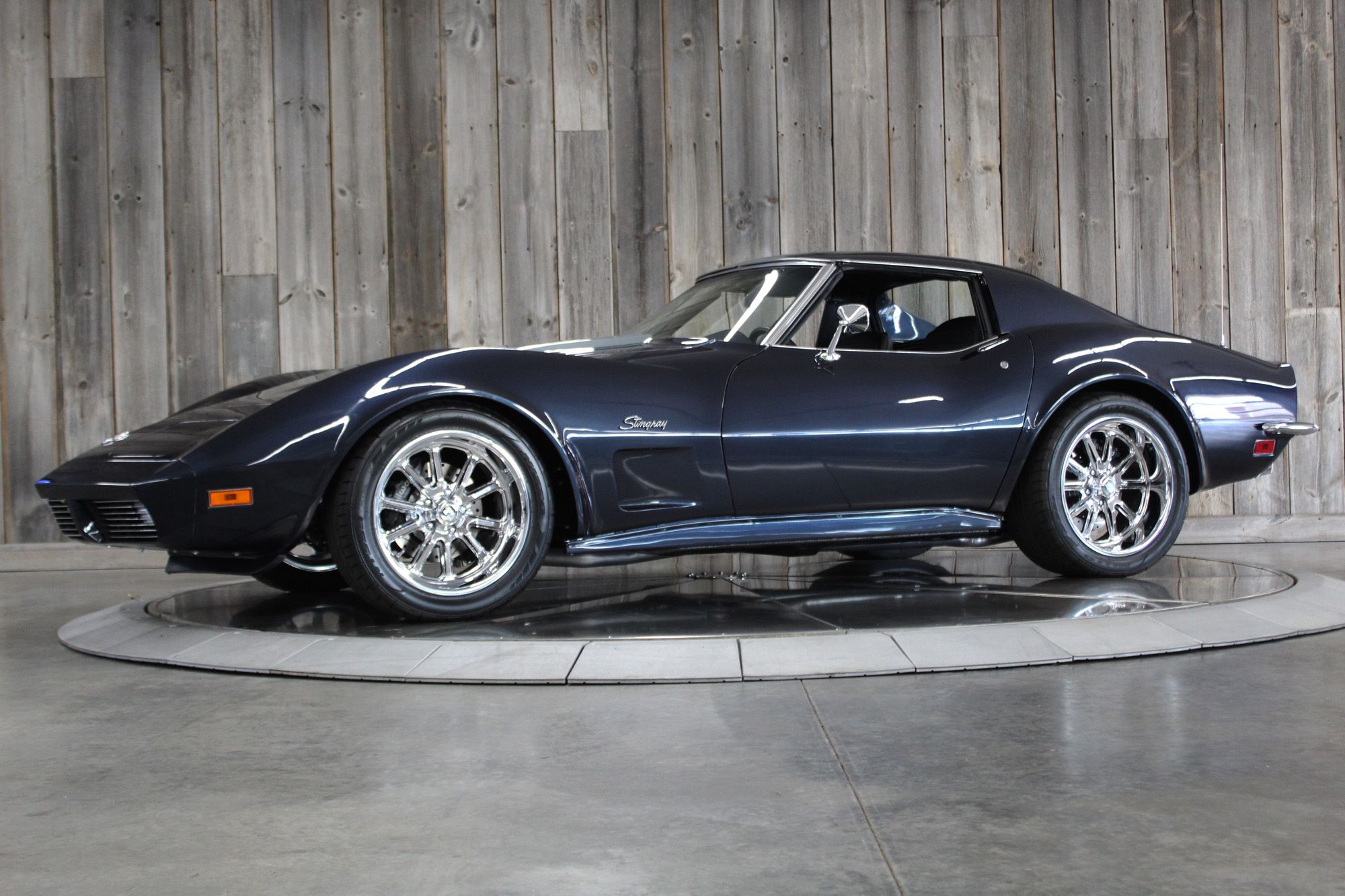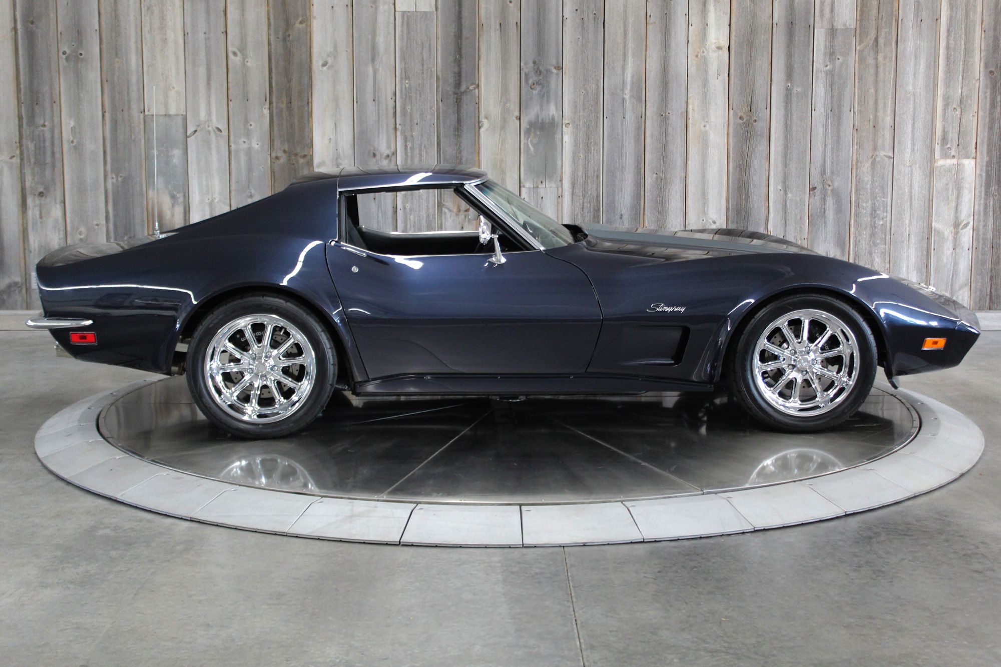 1973 CHEVY CORVETTE CUSTOM-- Stunning, OVER THE TOP RestoMod. Professional custom frame off restoration. Hot Rod Shop 383 CI high output Stroker V8 engine with Holly Sniper fuel injection and chrome front runner system. Producing approximately 500HP. A “Hot Rod Shop” 383 is a custom-built, high-performance engine that is good for everyday cruising and hot rodding. Mated to a Tremec 5spd. manual transmission which shifts smoothly and crisp. VINTAGE AC/HEAT. MagnaFlow stainless steel mufflers and all new exhaust. Van Steel Front and back sway bars, Van Steel performance handling suspension coil over system with adjustable coilovers and offset trailing arms, which keeps the car handling like a modern sports car. 1.125 inch sway bar and tubular control arms. No expense spared custom frame off build included: Its frame was media blasted then powder coated. After being expertly blocked and worked its body was smoothed and finished in Berlin blue base coat clearcoat paint with silver stripes (AMAZING COLOR). New door latches hinges and Strikers, new power steering, new power windows. Wilwood four-wheel power disc brakes with cross drilled rotors and braided stainless brake lines. 3.73 Posi-traction rear differential. Painless performance wiring and harness. Dakota Digital custom gauges, not available in this configuration through Dakota digital it was designed and assembled by an expert designer. New front windshield from PGW. Power windows, Vintage AC/heat. Kenwood DMX958XR monitor with receiver touchscreen system and hands-free Bluetooth. Amp–driven Rockford Fosgate subwoofer and kicker 6x9s. Smoothed firewall, new gas tank, with in tank fuel pump. Flaming River chrome tilt steering column. Full new interior- Custom Dash hand shaped and painted to match the car, tight knit carpet, newly wrapped bucket seats, new Stingray embroidered floor mats, new door panels, knobs and switches, new rubber weather strip, and a center console (donor or designed) to match a C6 Corvette custom fit to the car. US Mag chrome wheels wrapped in Nito NT555 255/45 ZR/18 inch front wheels and 285/40/ZR/18 inch rear tires. Painted to match T-tops. Electric headlight pop ups with projector lamps and LED bulbs. LED brake lights LED reverse lights. No emergency brake is installed. A new modern interpretation of a classic High-Performance Sports Car that leaves nothing to want. Mileage my change slightly but has currently clocked only 67 miles.