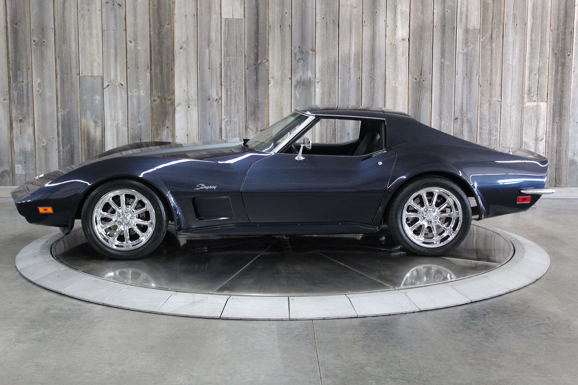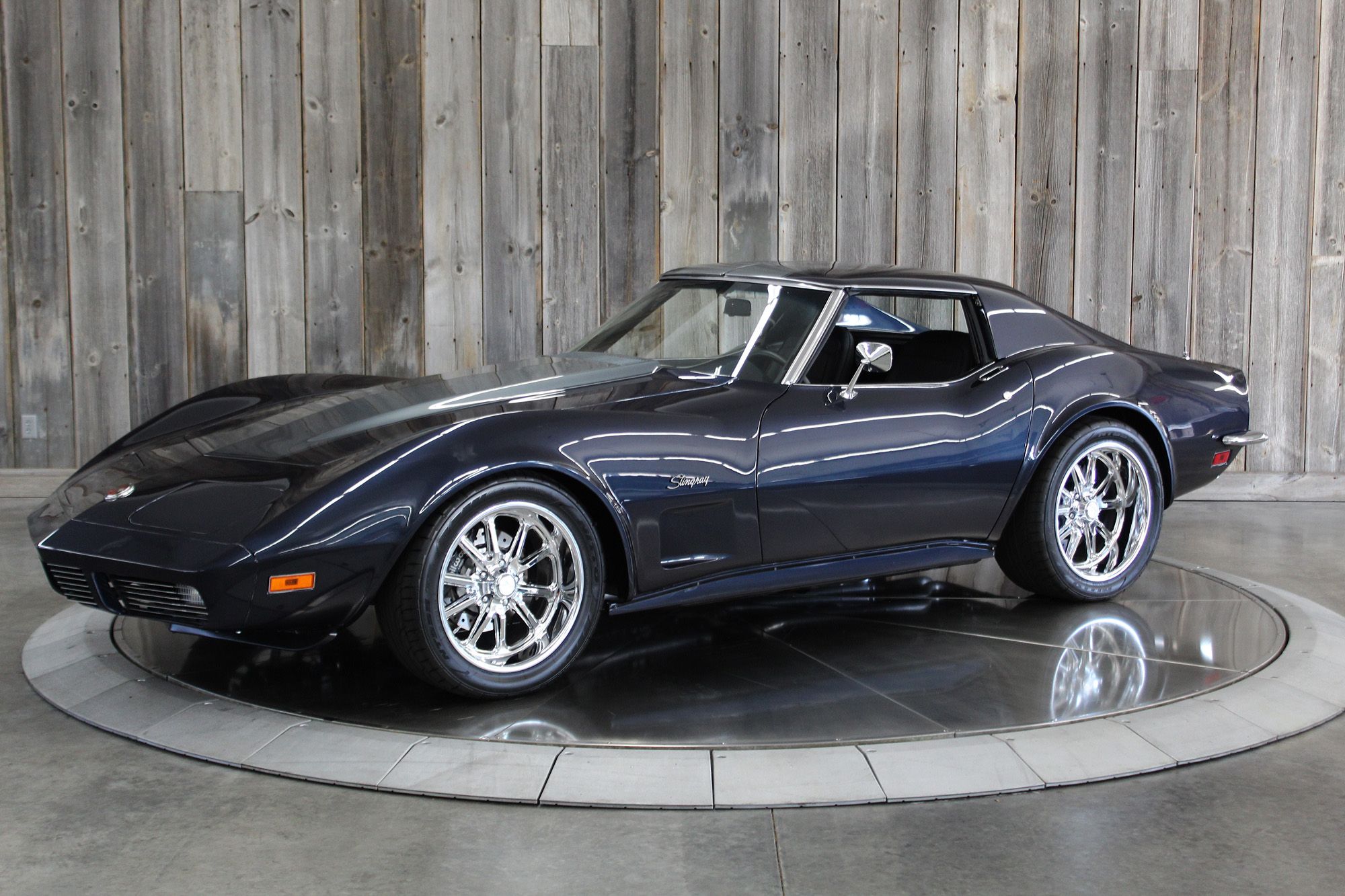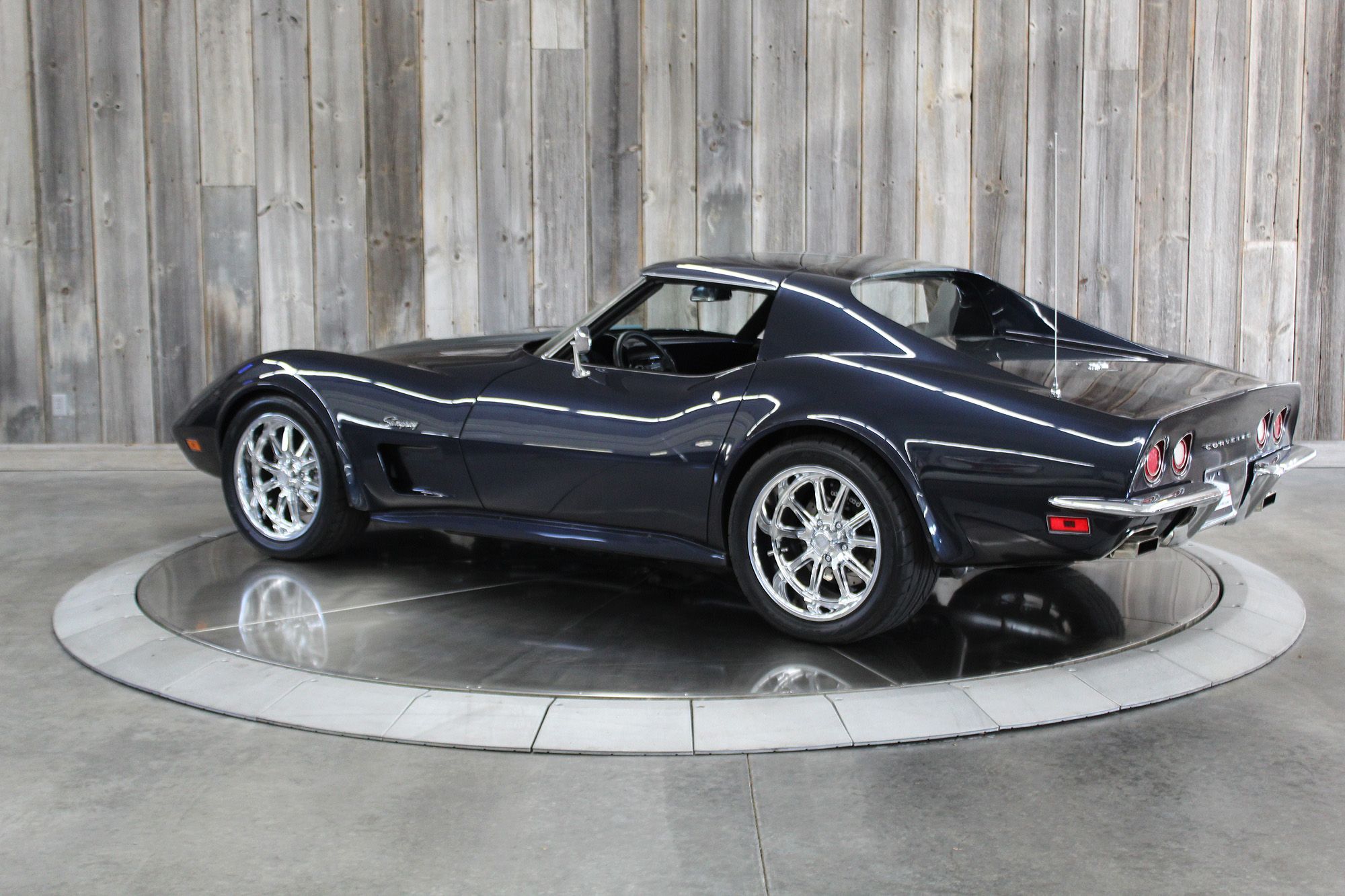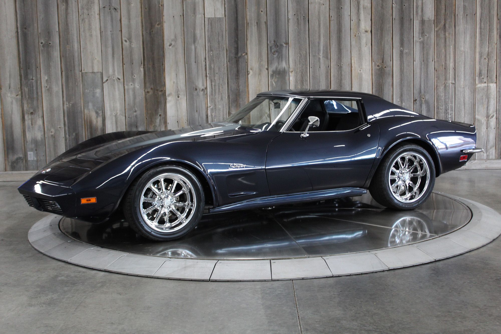 1973 CHEVY CORVETTE CUSTOM-- Stunning, OVER THE TOP RestoMod. Professional custom frame off restoration. Hot Rod Shop 383 CI high output Stroker V8 engine with Holly Sniper fuel injection and chrome front runner system. Producing approximately 500HP. A “Hot Rod Shop” 383 is a custom-built, high-performance engine that is good for everyday cruising and hot rodding. Mated to a Tremec 5spd. manual transmission which shifts smoothly and crisp. VINTAGE AC/HEAT. MagnaFlow stainless steel mufflers and all new exhaust. Van Steel Front and back sway bars, Van Steel performance handling suspension coil over system with adjustable coilovers and offset trailing arms, which keeps the car handling like a modern sports car. 1.125 inch sway bar and tubular control arms. No expense spared custom frame off build included: Its frame was media blasted then powder coated. After being expertly blocked and worked its body was smoothed and finished in Berlin blue base coat clearcoat paint with silver stripes (AMAZING COLOR). New door latches hinges and Strikers, new power steering, new power windows. Wilwood four-wheel power disc brakes with cross drilled rotors and braided stainless brake lines. 3.73 Posi-traction rear differential. Painless performance wiring and harness. Dakota Digital custom gauges, not available in this configuration through Dakota digital it was designed and assembled by an expert designer. New front windshield from PGW. Power windows, Vintage AC/heat. Kenwood DMX958XR monitor with receiver touchscreen system and hands-free Bluetooth. Amp–driven Rockford Fosgate subwoofer and kicker 6x9s. Smoothed firewall, new gas tank, with in tank fuel pump. Flaming River chrome tilt steering column. Full new interior- Custom Dash hand shaped and painted to match the car, tight knit carpet, newly wrapped bucket seats, new Stingray embroidered floor mats, new door panels, knobs and switches, new rubber weather strip, and a center console (donor or designed) to match a C6 Corvette custom fit to the car. US Mag chrome wheels wrapped in Nito NT555 255/45 ZR/18 inch front wheels and 285/40/ZR/18 inch rear tires. Painted to match T-tops. Electric headlight pop ups with projector lamps and LED bulbs. LED brake lights LED reverse lights. No emergency brake is installed. A new modern interpretation of a classic High-Performance Sports Car that leaves nothing to want. Mileage my change slightly but has currently clocked only 67 miles.