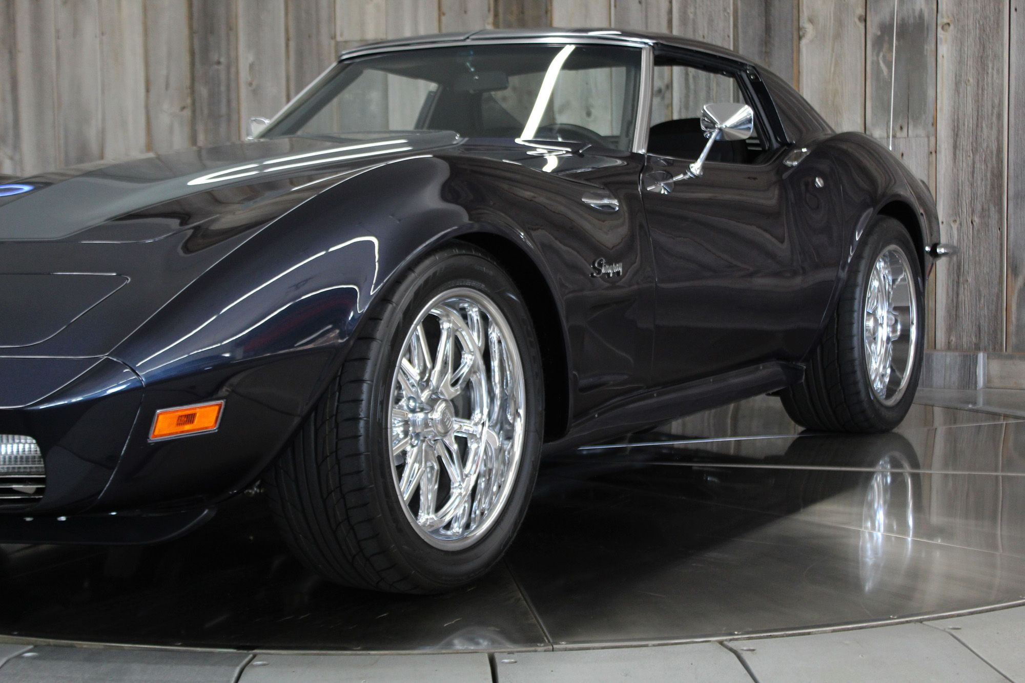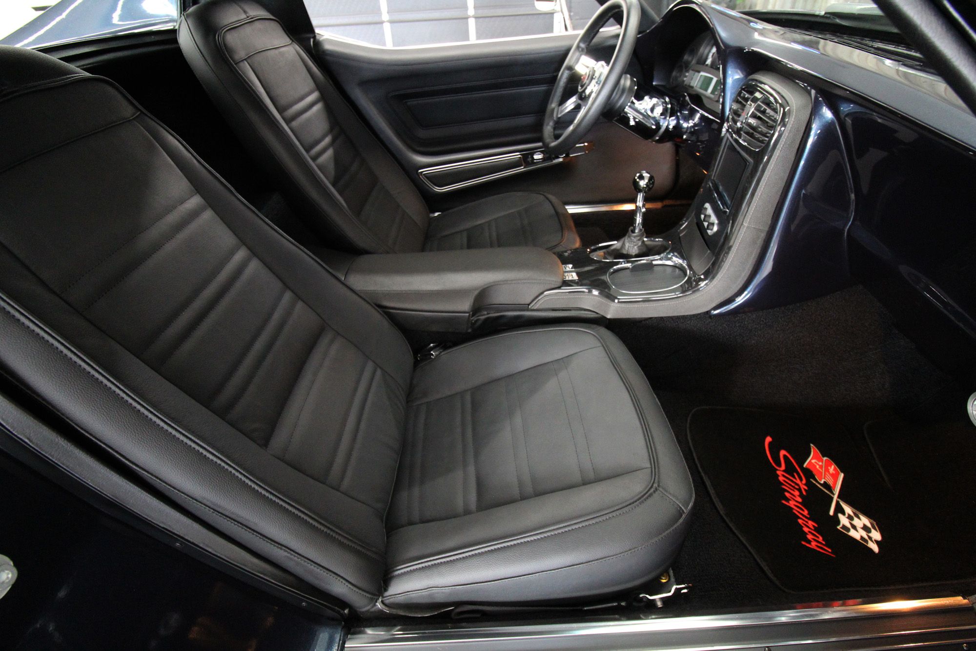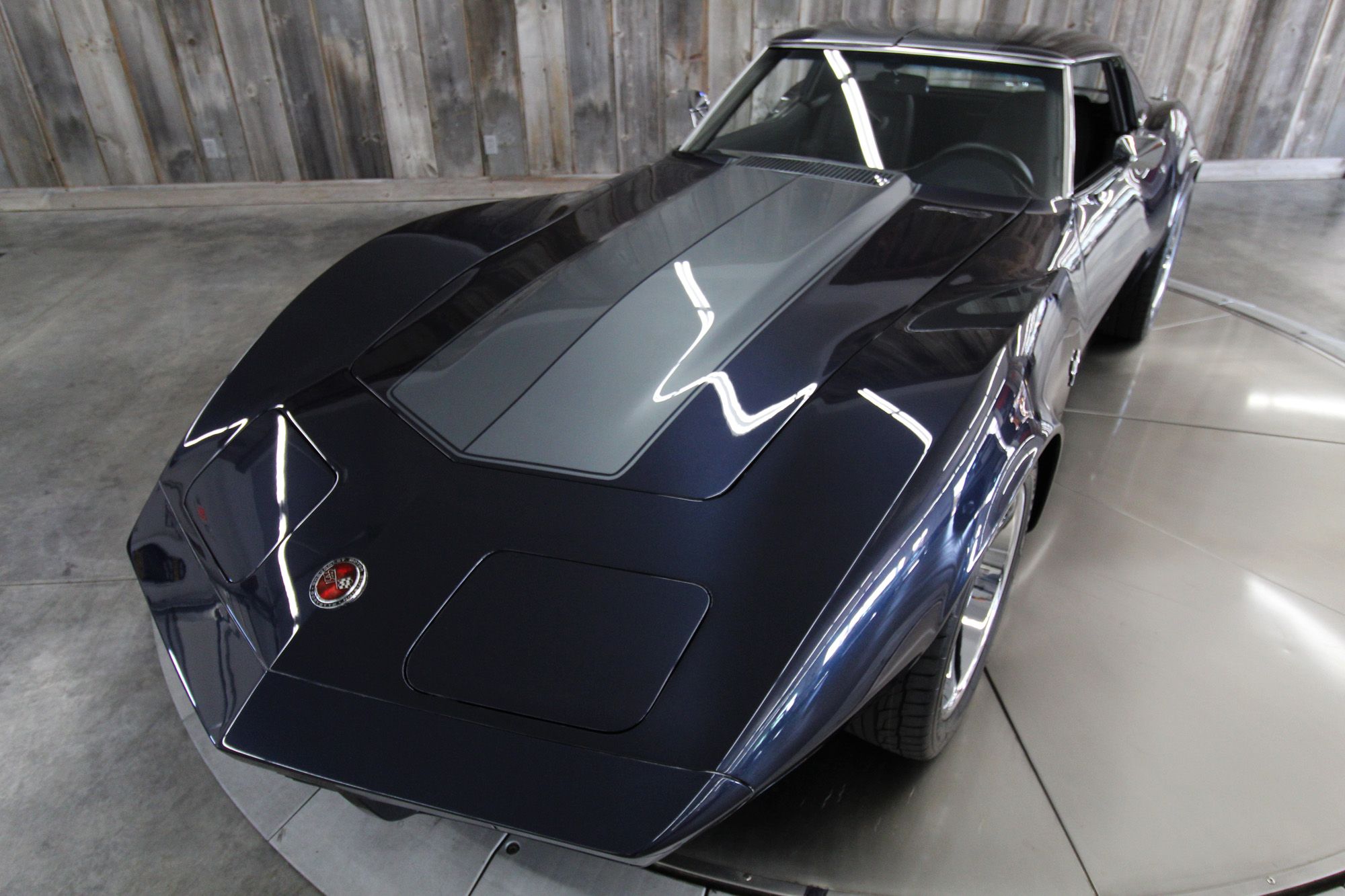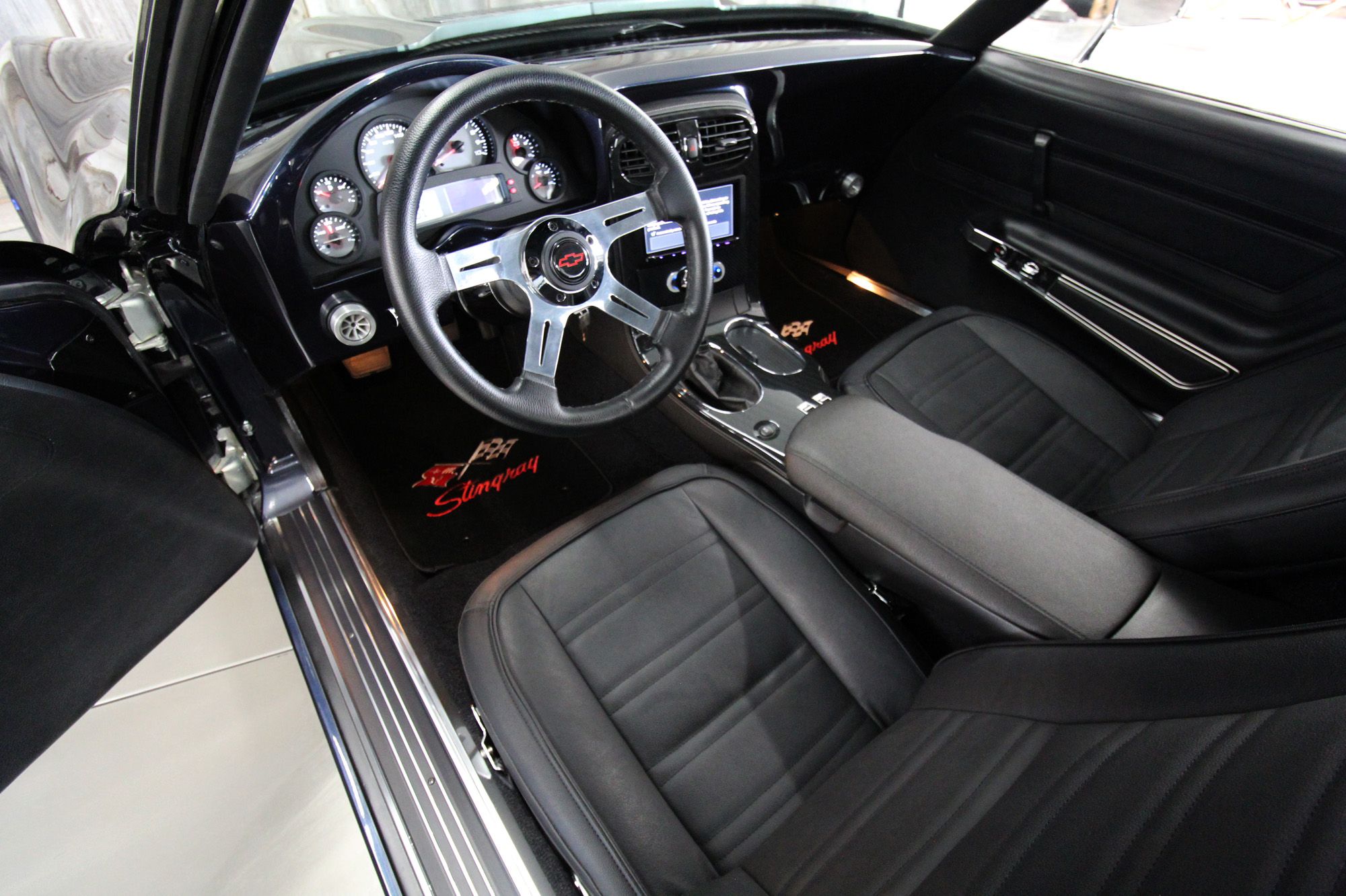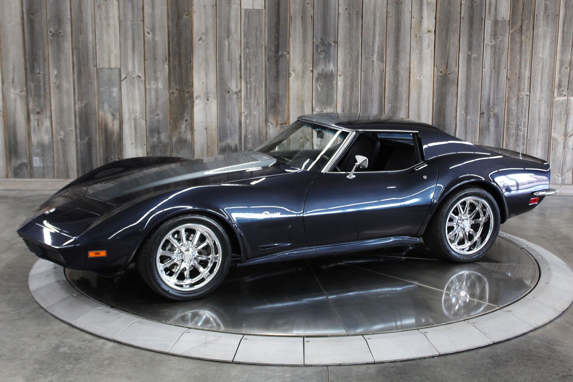 1973 CHEVY CORVETTE CUSTOM-- Stunning, OVER THE TOP RestoMod. Professional custom frame off restoration. Hot Rod Shop 383 CI high output Stroker V8 engine with Holly Sniper fuel injection and chrome front runner system. Producing approximately 500HP. A “Hot Rod Shop” 383 is a custom-built, high-performance engine that is good for everyday cruising and hot rodding. Mated to a Tremec 5spd. manual transmission which shifts smoothly and crisp. VINTAGE AC/HEAT. MagnaFlow stainless steel mufflers and all new exhaust. Van Steel Front and back sway bars, Van Steel performance handling suspension coil over system with adjustable coilovers and offset trailing arms, which keeps the car handling like a modern sports car. 1.125 inch sway bar and tubular control arms. No expense spared custom frame off build included: Its frame was media blasted then powder coated. After being expertly blocked and worked its body was smoothed and finished in Berlin blue base coat clearcoat paint with silver stripes (AMAZING COLOR). New door latches hinges and Strikers, new power steering, new power windows. Wilwood four-wheel power disc brakes with cross drilled rotors and braided stainless brake lines. 3.73 Posi-traction rear differential. Painless performance wiring and harness. Dakota Digital custom gauges, not available in this configuration through Dakota digital it was designed and assembled by an expert designer. New front windshield from PGW. Power windows, Vintage AC/heat. Kenwood DMX958XR monitor with receiver touchscreen system and hands-free Bluetooth. Amp–driven Rockford Fosgate subwoofer and kicker 6x9s. Smoothed firewall, new gas tank, with in tank fuel pump. Flaming River chrome tilt steering column. Full new interior- Custom Dash hand shaped and painted to match the car, tight knit carpet, newly wrapped bucket seats, new Stingray embroidered floor mats, new door panels, knobs and switches, new rubber weather strip, and a center console (donor or designed) to match a C6 Corvette custom fit to the car. US Mag chrome wheels wrapped in Nito NT555 255/45 ZR/18 inch front wheels and 285/40/ZR/18 inch rear tires. Painted to match T-tops. Electric headlight pop ups with projector lamps and LED bulbs. LED brake lights LED reverse lights. No emergency brake is installed. A new modern interpretation of a classic High-Performance Sports Car that leaves nothing to want. Mileage my change slightly but has currently clocked only 67 miles.