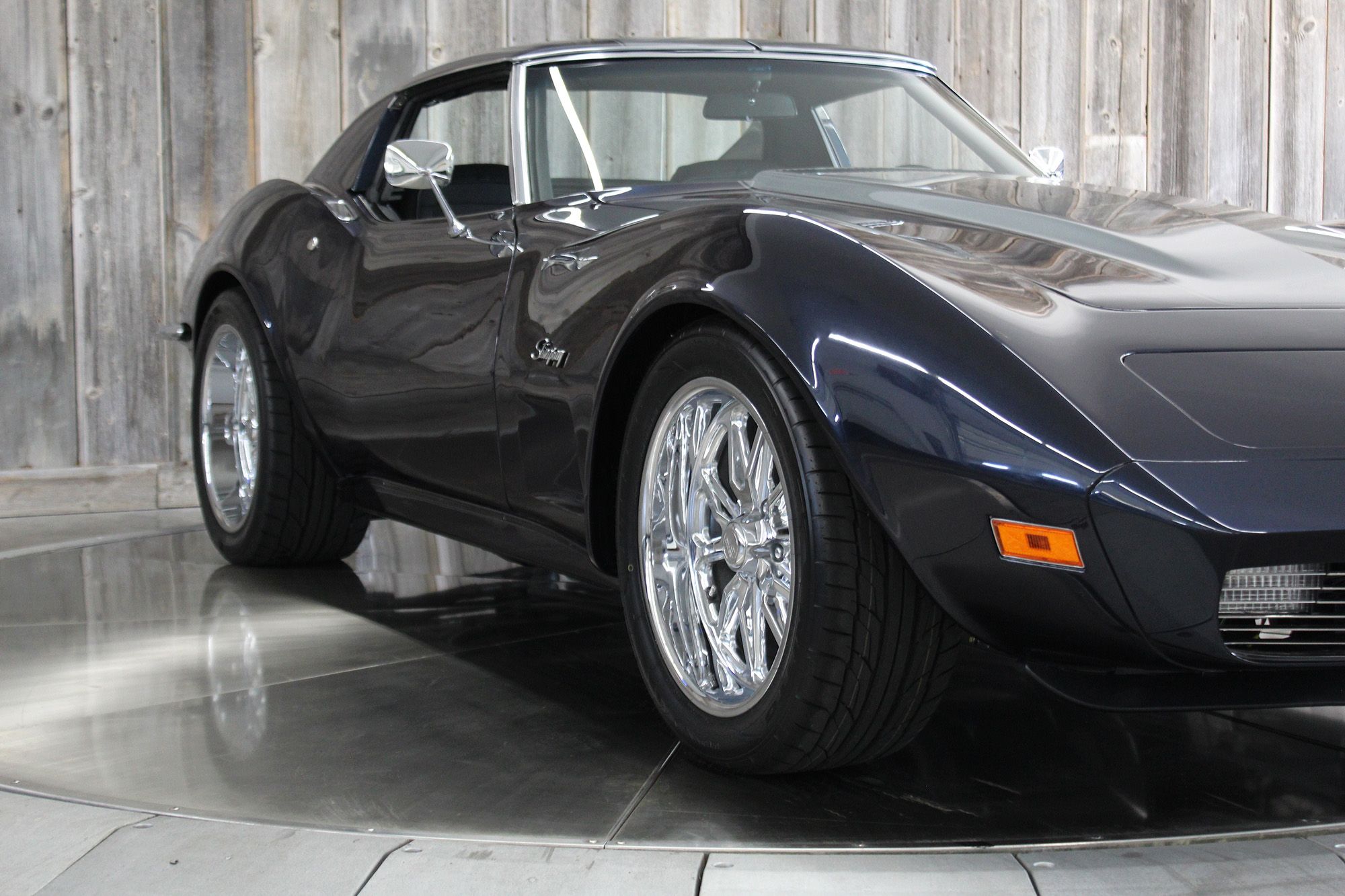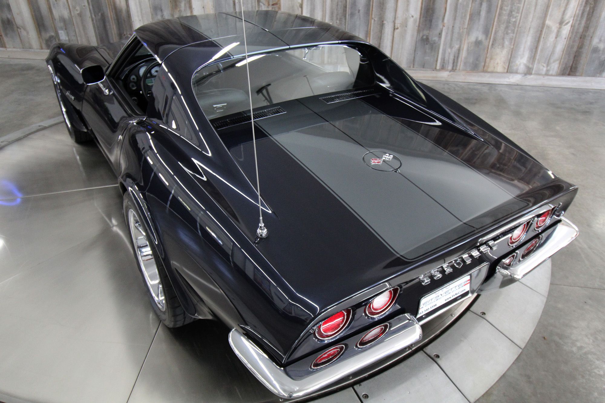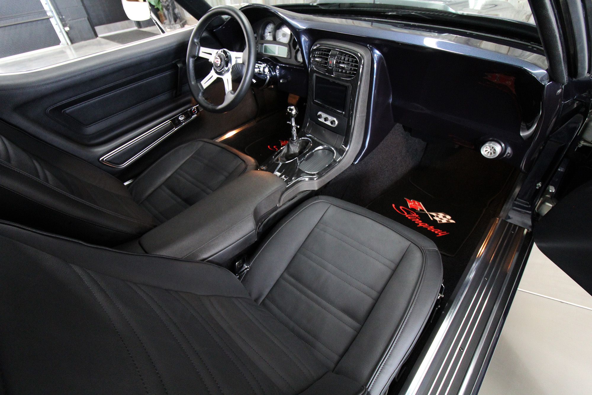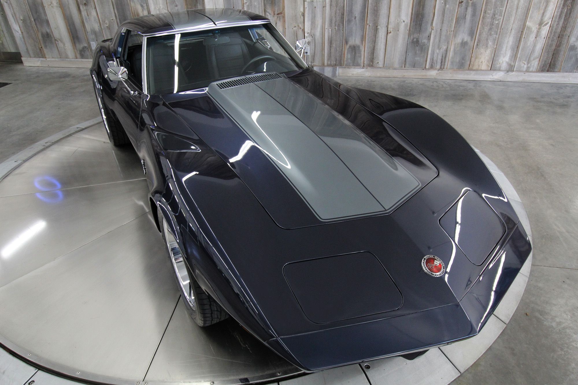 1973 CHEVY CORVETTE CUSTOM-- Stunning, OVER THE TOP RestoMod. Professional custom frame off restoration. Hot Rod Shop 383 CI high output Stroker V8 engine with Holly Sniper fuel injection and chrome front runner system. Producing approximately 500HP. A “Hot Rod Shop” 383 is a custom-built, high-performance engine that is good for everyday cruising and hot rodding. Mated to a Tremec 5spd. manual transmission which shifts smoothly and crisp. VINTAGE AC/HEAT. MagnaFlow stainless steel mufflers and all new exhaust. Van Steel Front and back sway bars, Van Steel performance handling suspension coil over system with adjustable coilovers and offset trailing arms, which keeps the car handling like a modern sports car. 1.125 inch sway bar and tubular control arms. No expense spared custom frame off build included: Its frame was media blasted then powder coated. After being expertly blocked and worked its body was smoothed and finished in Berlin blue base coat clearcoat paint with silver stripes (AMAZING COLOR). New door latches hinges and Strikers, new power steering, new power windows. Wilwood four-wheel power disc brakes with cross drilled rotors and braided stainless brake lines. 3.73 Posi-traction rear differential. Painless performance wiring and harness. Dakota Digital custom gauges, not available in this configuration through Dakota digital it was designed and assembled by an expert designer. New front windshield from PGW. Power windows, Vintage AC/heat. Kenwood DMX958XR monitor with receiver touchscreen system and hands-free Bluetooth. Amp–driven Rockford Fosgate subwoofer and kicker 6x9s. Smoothed firewall, new gas tank, with in tank fuel pump. Flaming River chrome tilt steering column. Full new interior- Custom Dash hand shaped and painted to match the car, tight knit carpet, newly wrapped bucket seats, new Stingray embroidered floor mats, new door panels, knobs and switches, new rubber weather strip, and a center console (donor or designed) to match a C6 Corvette custom fit to the car. US Mag chrome wheels wrapped in Nito NT555 255/45 ZR/18 inch front wheels and 285/40/ZR/18 inch rear tires. Painted to match T-tops. Electric headlight pop ups with projector lamps and LED bulbs. LED brake lights LED reverse lights. No emergency brake is installed. A new modern interpretation of a classic High-Performance Sports Car that leaves nothing to want. Mileage my change slightly but has currently clocked only 67 miles.