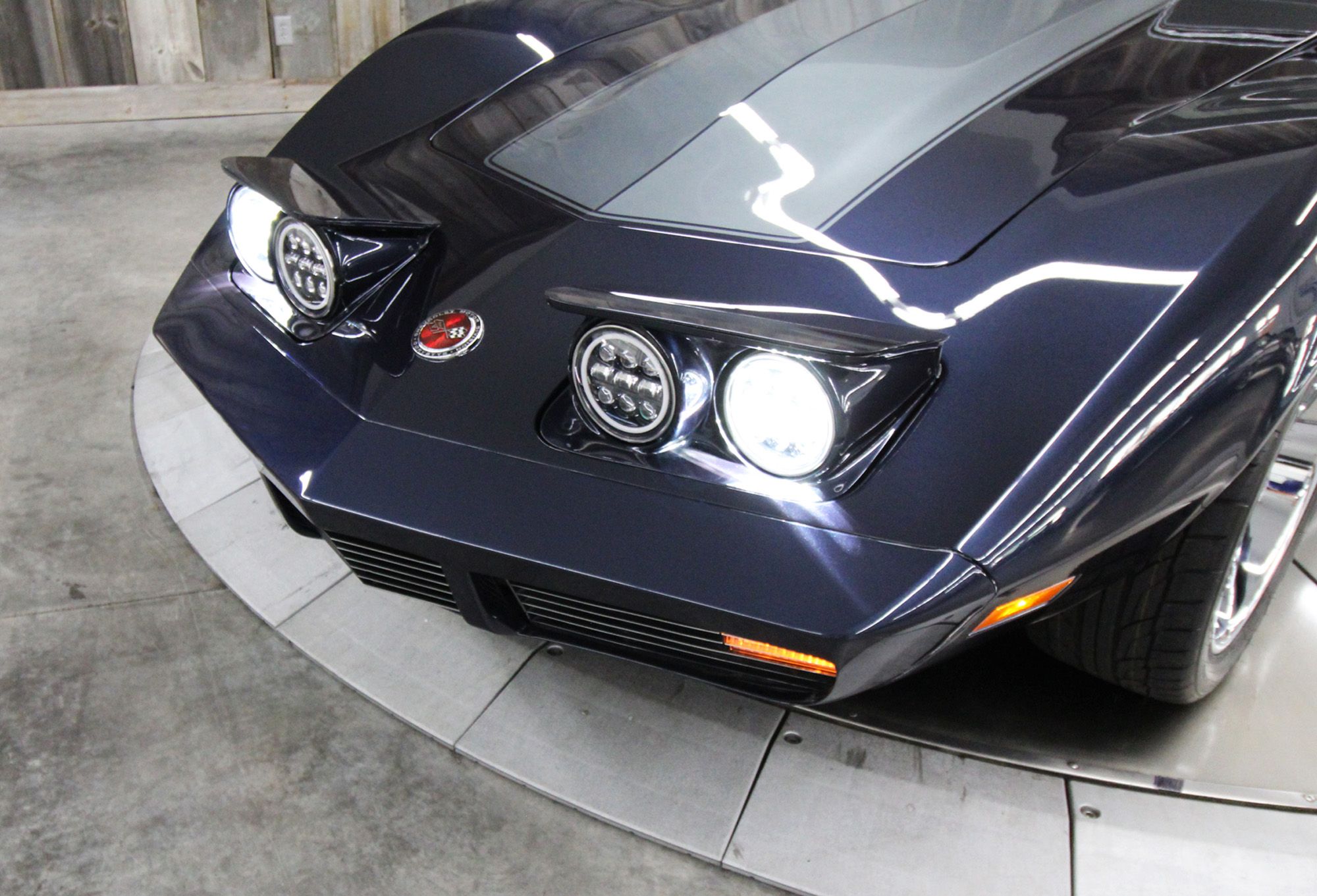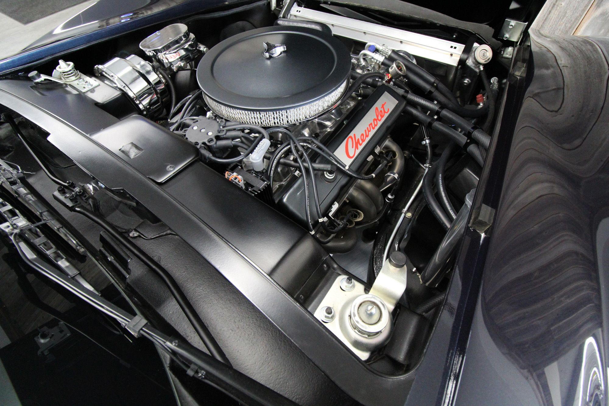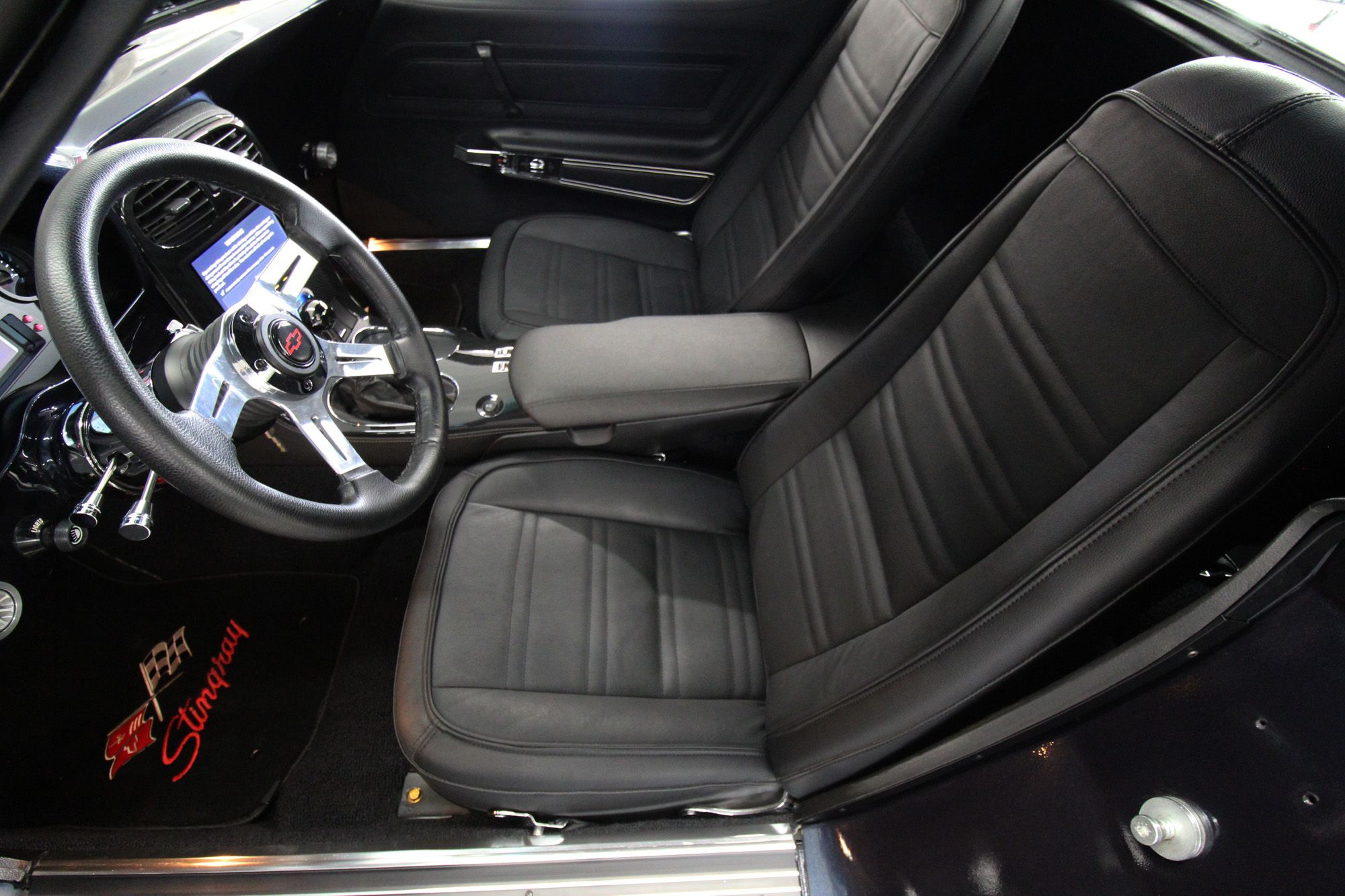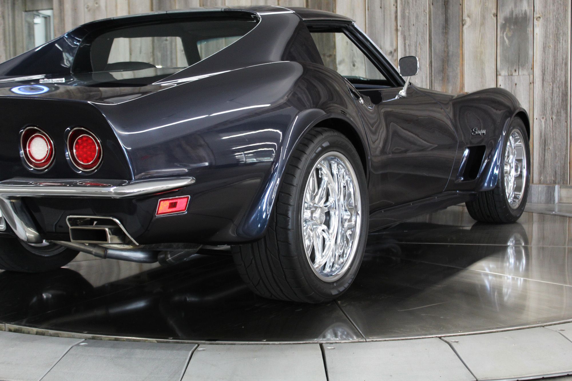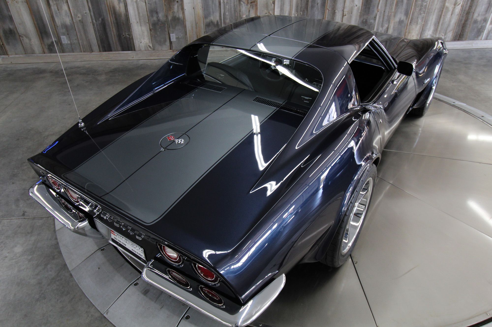 1973 CHEVY CORVETTE CUSTOM-- Stunning, OVER THE TOP RestoMod. Professional custom frame off restoration. Hot Rod Shop 383 CI high output Stroker V8 engine with Holly Sniper fuel injection and chrome front runner system. Producing approximately 500HP. A “Hot Rod Shop” 383 is a custom-built, high-performance engine that is good for everyday cruising and hot rodding. Mated to a Tremec 5spd. manual transmission which shifts smoothly and crisp. VINTAGE AC/HEAT. MagnaFlow stainless steel mufflers and all new exhaust. Van Steel Front and back sway bars, Van Steel performance handling suspension coil over system with adjustable coilovers and offset trailing arms, which keeps the car handling like a modern sports car. 1.125 inch sway bar and tubular control arms. No expense spared custom frame off build included: Its frame was media blasted then powder coated. After being expertly blocked and worked its body was smoothed and finished in Berlin blue base coat clearcoat paint with silver stripes (AMAZING COLOR). New door latches hinges and Strikers, new power steering, new power windows. Wilwood four-wheel power disc brakes with cross drilled rotors and braided stainless brake lines. 3.73 Posi-traction rear differential. Painless performance wiring and harness. Dakota Digital custom gauges, not available in this configuration through Dakota digital it was designed and assembled by an expert designer. New front windshield from PGW. Power windows, Vintage AC/heat. Kenwood DMX958XR monitor with receiver touchscreen system and hands-free Bluetooth. Amp–driven Rockford Fosgate subwoofer and kicker 6x9s. Smoothed firewall, new gas tank, with in tank fuel pump. Flaming River chrome tilt steering column. Full new interior- Custom Dash hand shaped and painted to match the car, tight knit carpet, newly wrapped bucket seats, new Stingray embroidered floor mats, new door panels, knobs and switches, new rubber weather strip, and a center console (donor or designed) to match a C6 Corvette custom fit to the car. US Mag chrome wheels wrapped in Nito NT555 255/45 ZR/18 inch front wheels and 285/40/ZR/18 inch rear tires. Painted to match T-tops. Electric headlight pop ups with projector lamps and LED bulbs. LED brake lights LED reverse lights. No emergency brake is installed. A new modern interpretation of a classic High-Performance Sports Car that leaves nothing to want. Mileage my change slightly but has currently clocked only 67 miles.