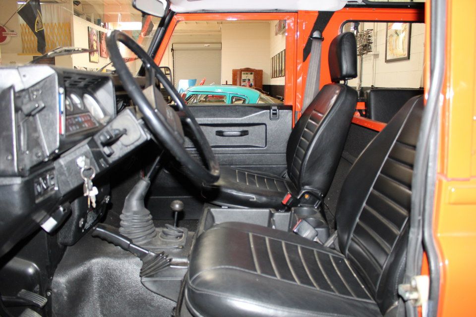This is a 1987 Landrover Defender 90 equipped with a 2.5 Litre Diesel engine and 5 speed Gear box. The vehicle was recently imported form Italy by a local service man and has been thoroughly gone through. The engine was rebuilt by a Land Rover specialist and freshly painted in this stunning orange over black combination.