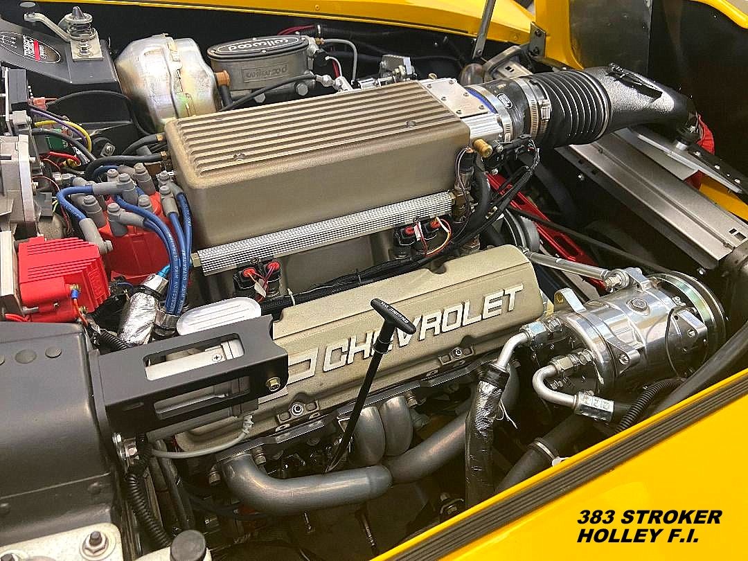 HAS A 383 CHEVY STROKER ENGINE WITH HOLLEY STEALTH RAM (MULTI PORT) FUEL INJECTION, ALUMINUM CHEVY "FAST BURN" PERFORMANCE HEADS, 4 BOLT MAINS, @ 450 HORSEPOWER, CUSTOM HOOD - DOES NOT BLOCK YOUR VISION, 5 SPEED TREMEC, POWER RACK AND PINION STEERING, UPGRADED 4 WHEEL POWER DISC BRAKES, POWER WINDOWS, TILT WHEEL, RECLINING LEATHER BUCKETS, FULL CUSTOM DASH, GREAT RIDING - AWESOME HANDLING COMPETITION, MONO LEAF FRONT AND REAR SUSPENSION WITH ADJUSTABLE RIDE HEIGHT, BILLET SPECIALTIES WHEELS, LEMANS RACING STYLE GAS CAP, FRONT COLOR MATCHED CHIN SPOILER, HEAT / SOUND PROOFING THROUGHOUT.
