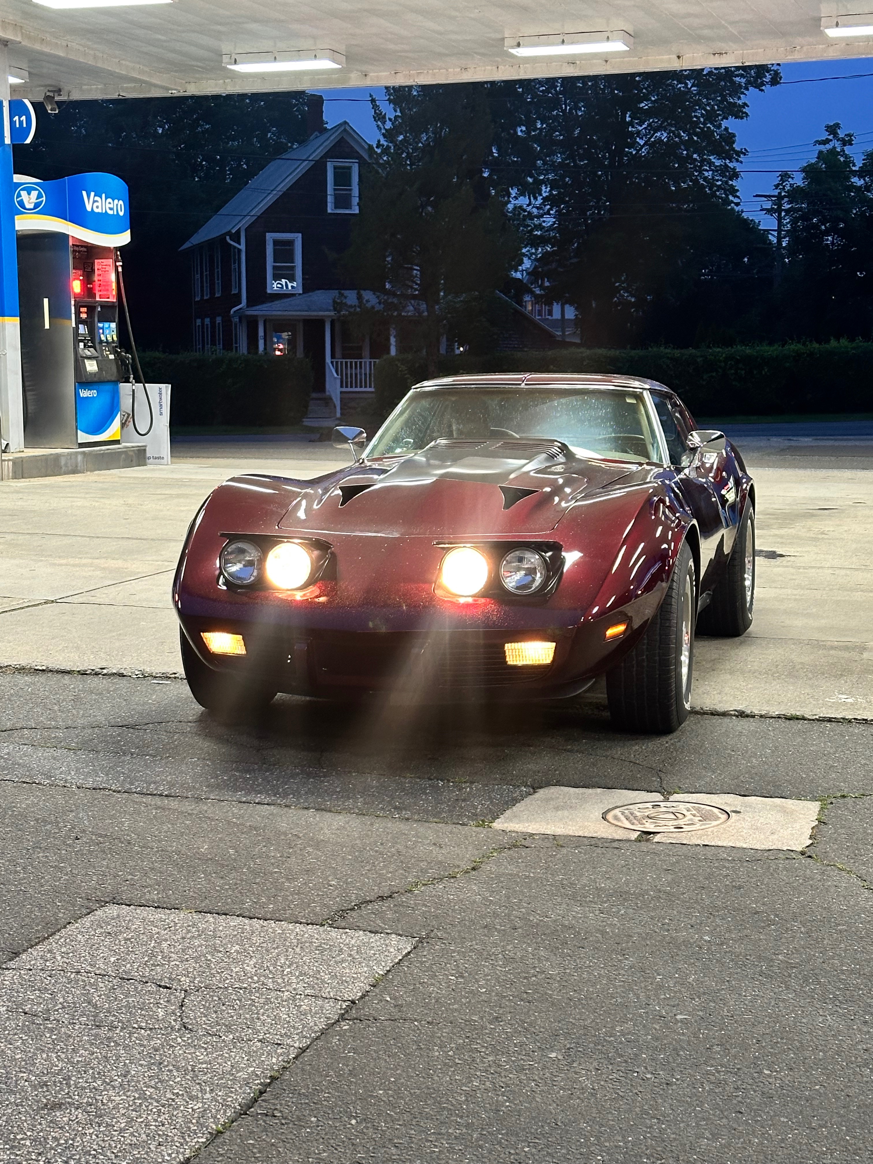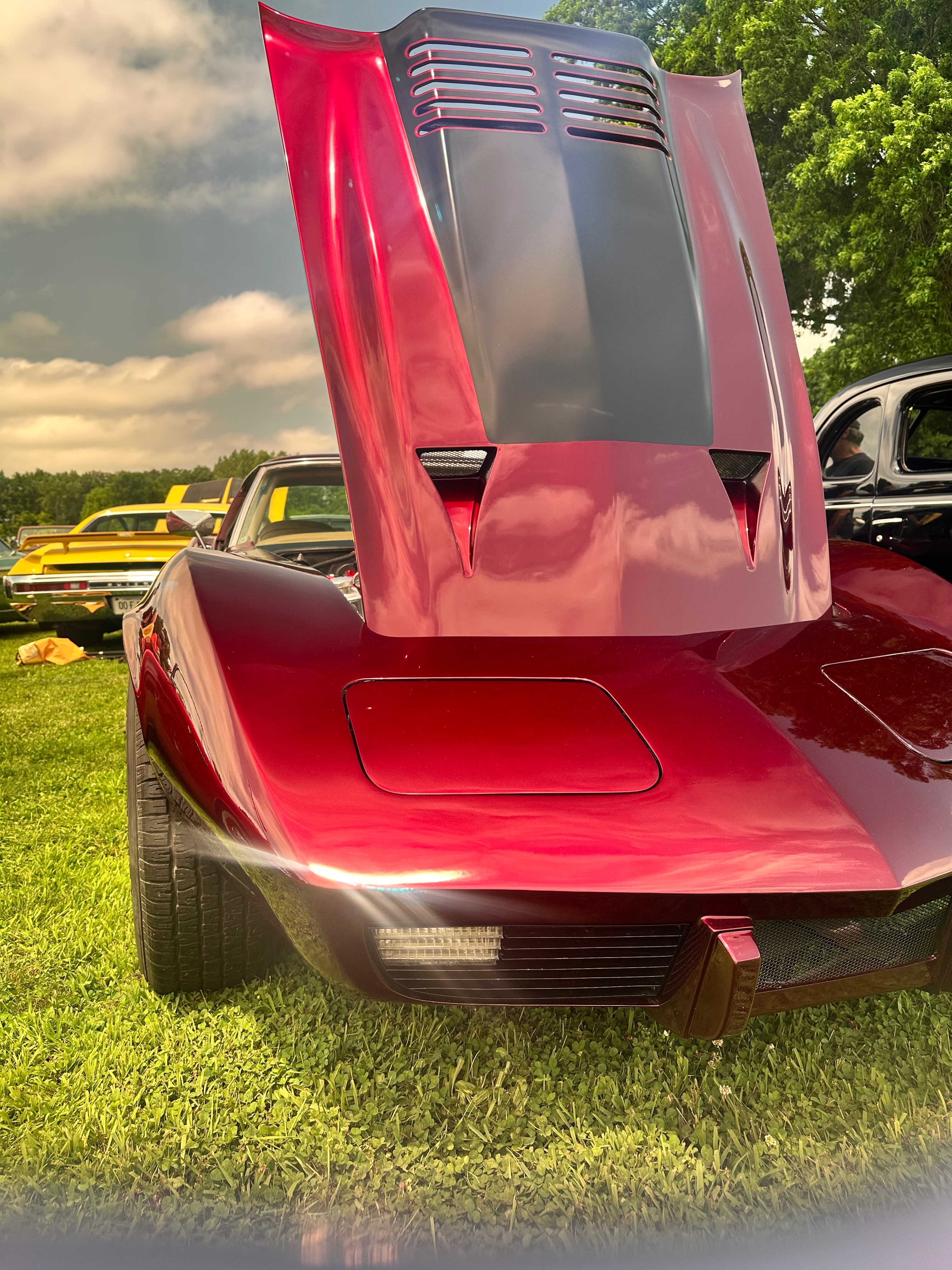 A resto modded 1975 c3 with a built 454 bbc, custom paint and molded body work to join split bumpers. 710 hp to the wheels