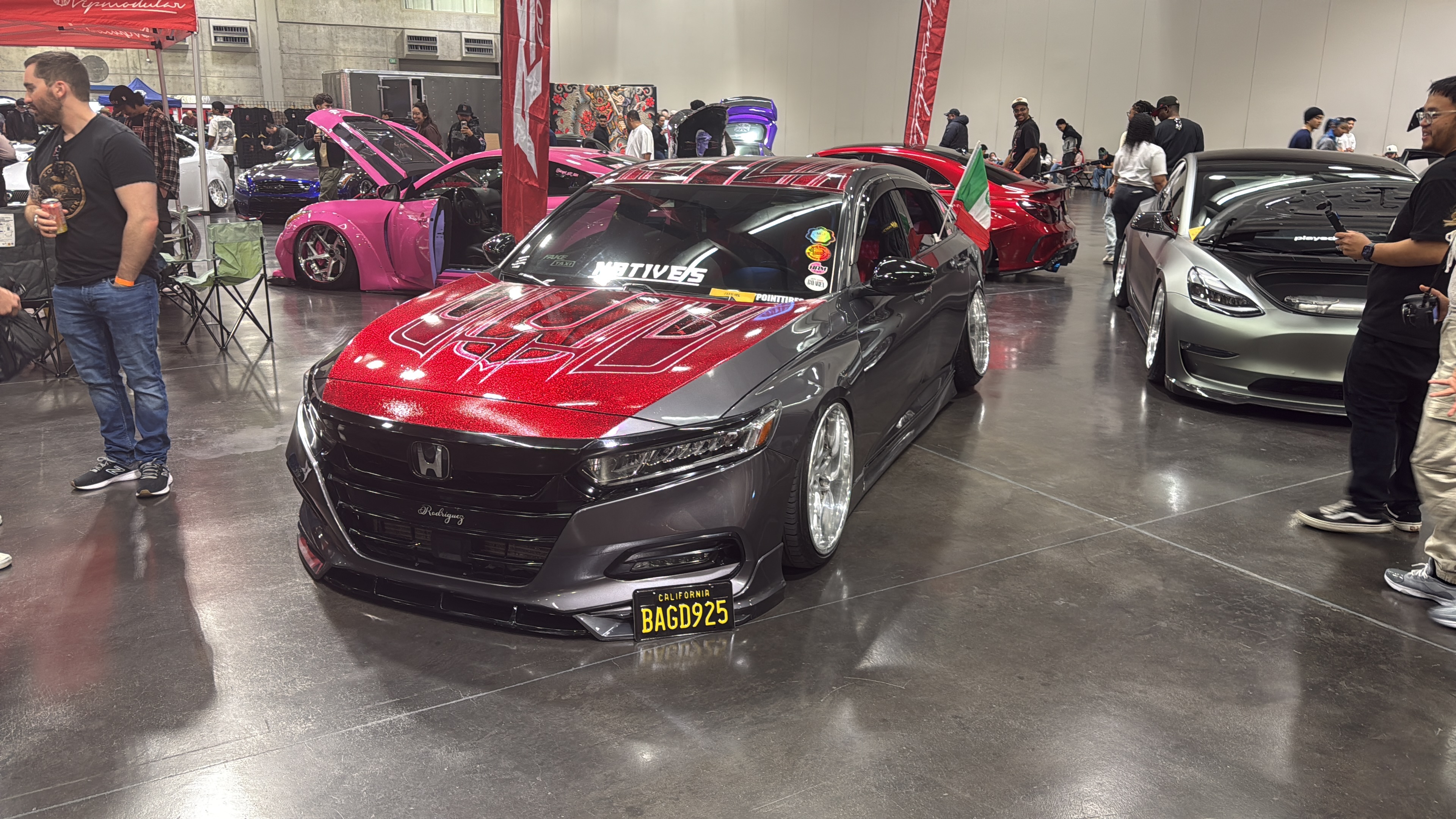 Added body kit, better sway bars, custom shifter knob, paracord wrapped steering wheel, rims, spikes added all over car for detail, duel straight pipes, and 2-12 inch subs.
